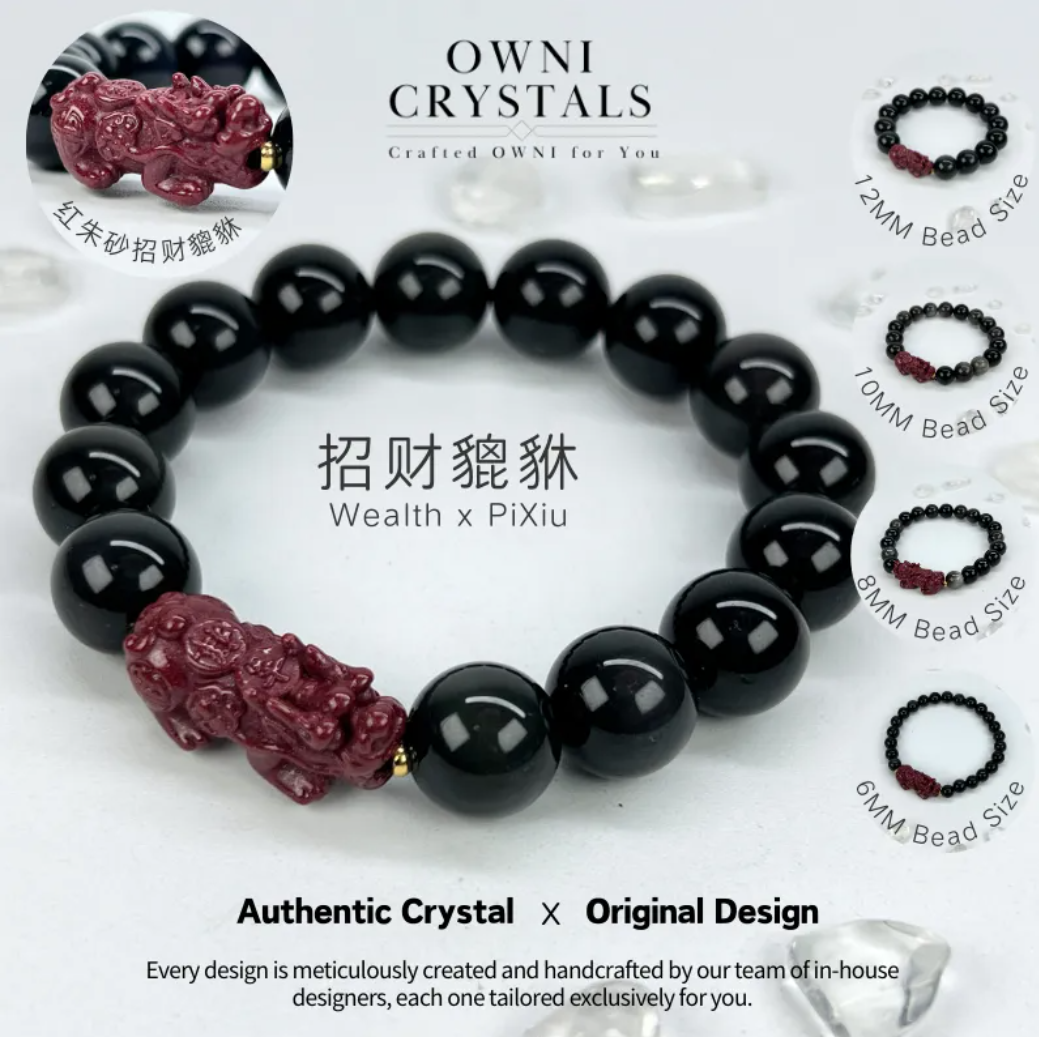 👉貔貅守护 Cinnabar Pixiu with Obsidian Bracelet for Protection