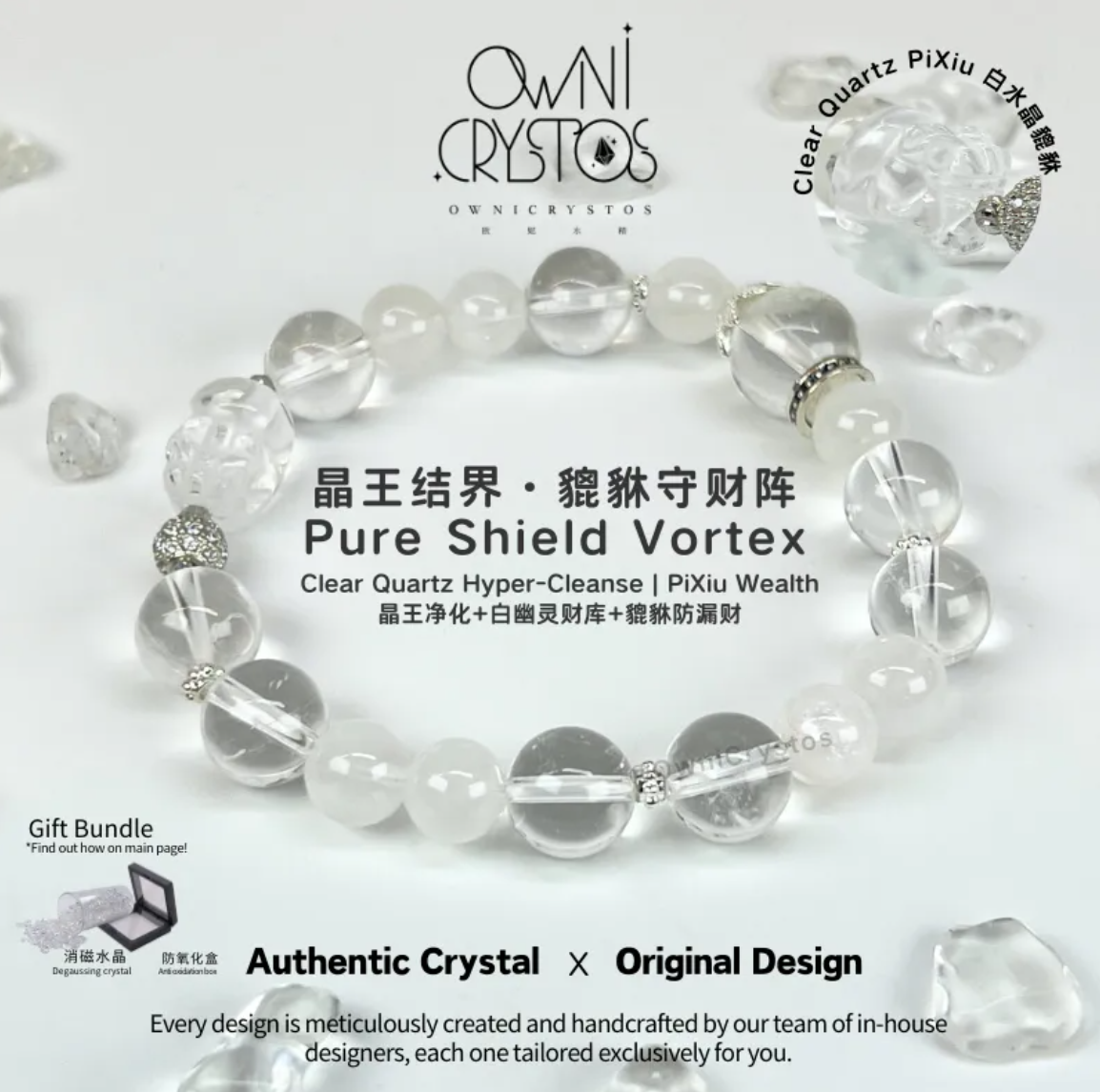 👉Natural Clear Quartz and White Phantom Quartz Bracelet: Pixiu Wealth & Purify energy